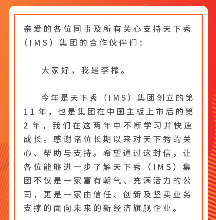 今日公司再度漲停,股價(jià)報(bào)15.31元。這要從公司董事長(zhǎng)李檬發(fā)布了一封題為《面向下一個(gè)十年,讓連接更有價(jià)值》的公開(kāi)信算起,天下秀股價(jià)已經(jīng)連續(xù)兩個(gè)漲停,最新總市值較11月17日收盤(pán)增長(zhǎng)48.09億元。