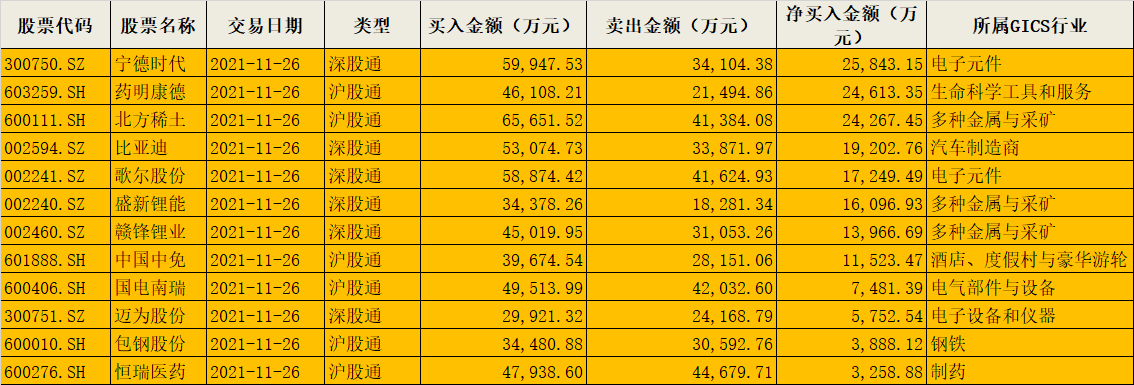 據(jù)記者梳理,寧德時(shí)代、藥明康德、北方稀土、比亞迪、歌爾股份、盛新鋰能、贛鋒鋰業(yè)、中國(guó)中免等個(gè)股當(dāng)日受到北上資金凈買入金額超過1.1億元。
