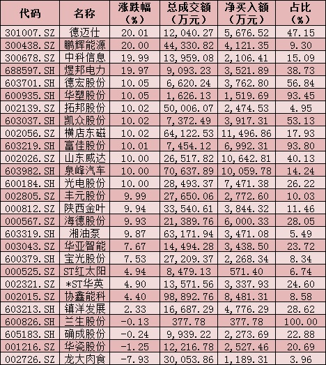 周一(11月29日)個(gè)股搶籌龍虎榜情況