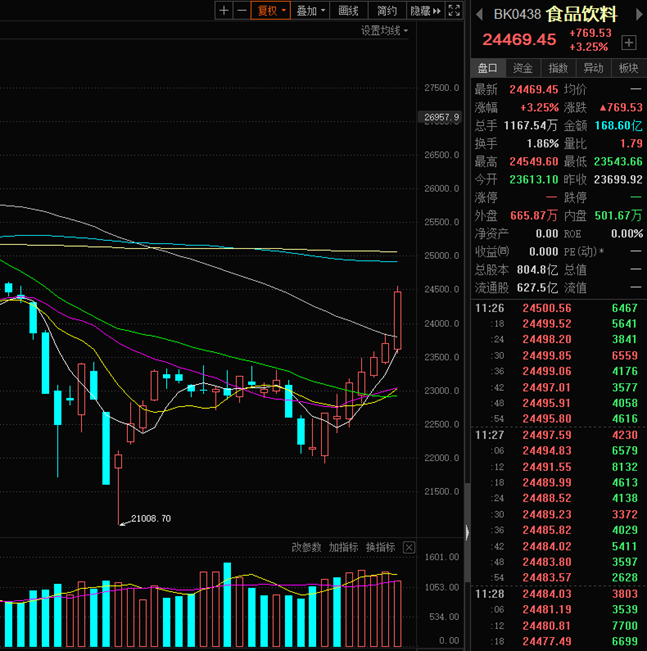 具體來看,截至4月20日11:30,食品飲料概念板塊領(lǐng)漲,漲幅達3.25%。