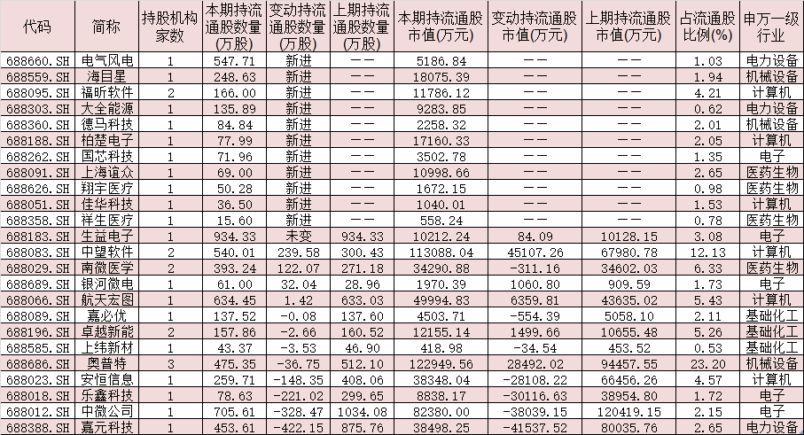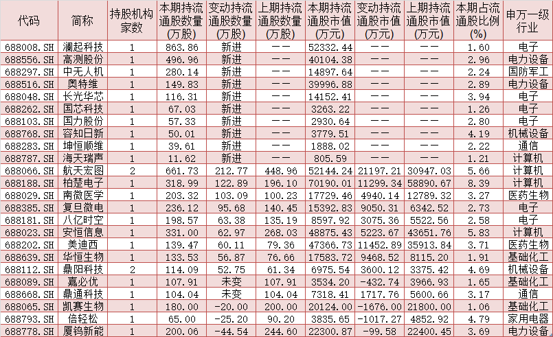 表1:今年二季度獲社?;鸪謧}(cāng)的科創(chuàng)板公司股票