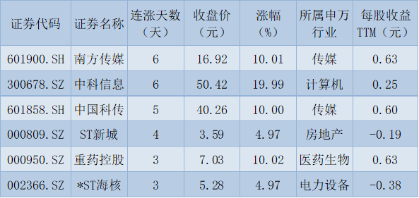 表:連續(xù)上漲3日且今日收盤漲停股一覽