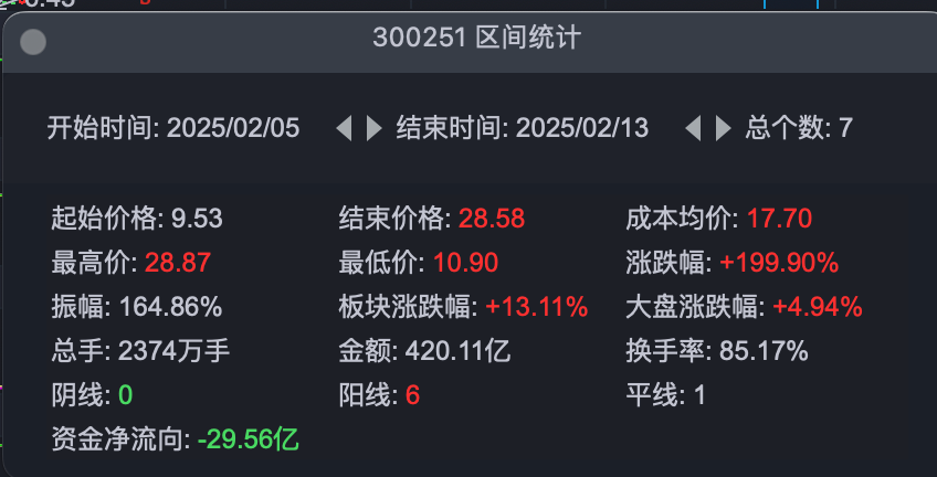 東方財(cái)富行情軟件顯示,2月5日至2月13日(午間收盤(pán)),7個(gè)交易日內(nèi),光線傳媒漲幅達(dá)199.9%,其中2月10日、2月11日、2月12日3個(gè)交易日光線傳媒均以20CM漲停收盤(pán)。目前,光線傳媒已成為A股市值最高的影視院線上市公司。