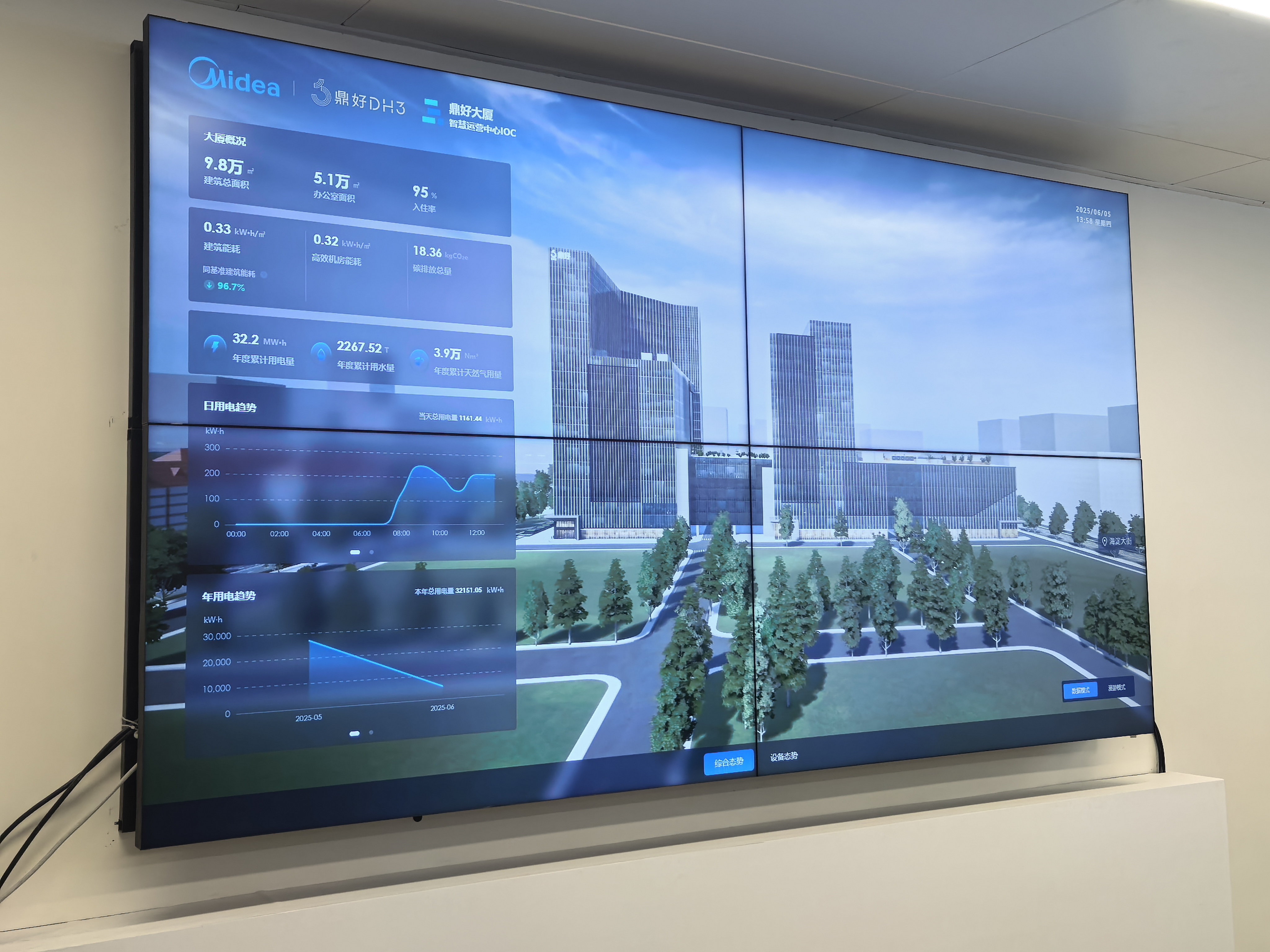 他透露,美的樓宇科技還為大樓提供了高效運維服務(wù)。通過使用自研的虛擬運維平臺,現(xiàn)場調(diào)試周期降低了70%,人力成本減少了80%。這種“硬件+軟件”的全方位升級,使得鼎好DH3每年節(jié)約電量約100萬度,減少碳排放約800噸。