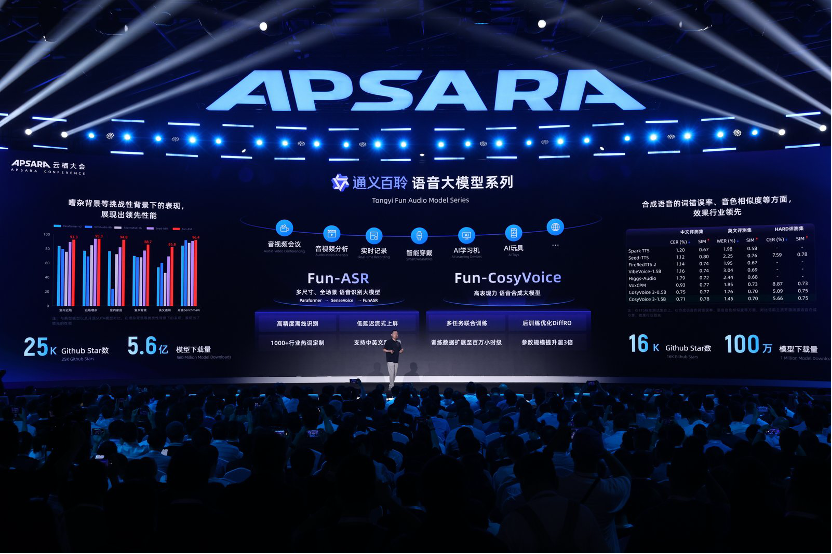 Fun-ASR基于數(shù)千萬小時(shí)真實(shí)語音數(shù)據(jù)訓(xùn)練而成,具備強(qiáng)大的上下文理解能力與行業(yè)適應(yīng)性,可實(shí)時(shí)處理10多種語言;Fun-CosyVoice可提供上百種預(yù)制音色,適用于客服、銷售、直播電商、消費(fèi)電子、有聲書、兒童娛樂等場景。目前,通義百聆開源模型的下載量已超5.6億。