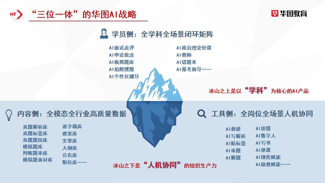 “AI產(chǎn)品質(zhì)量過硬,關(guān)鍵在于經(jīng)歷了海量線下付費學(xué)員的真實驗證,并在教師協(xié)助下不斷強化學(xué)習(xí),本質(zhì)是深度的人機協(xié)同。”依托規(guī)模優(yōu)勢,華圖實現(xiàn)了唯有大機構(gòu)才能承擔的人機協(xié)同投入。