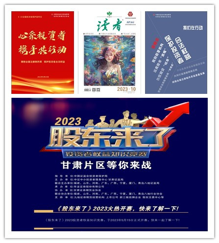 在宣傳方面,甘肅證券期貨業(yè)協(xié)會借力《讀者》知名度高、受眾面廣的閱讀資源優(yōu)勢,與甘肅證監(jiān)局繼續(xù)聯(lián)合推出特色形象刊,讓投資者教育與賽事宣傳平添一絲親和力與“文藝范”。按甘肅片區(qū)特色活動“點亮城市圈”構(gòu)想,為9個賽區(qū)96個地級市統(tǒng)一印制了宣傳旗幟,籍此將《股東來了》宣推活動覆蓋9大賽區(qū)所有城市,以薪火相傳、星火燎原之勢,展現(xiàn)9大賽區(qū)團結(jié)協(xié)作共助投保的精神,呼應中國證監(jiān)會倡導的“心系投資者、攜手共行動”的大投保理念。