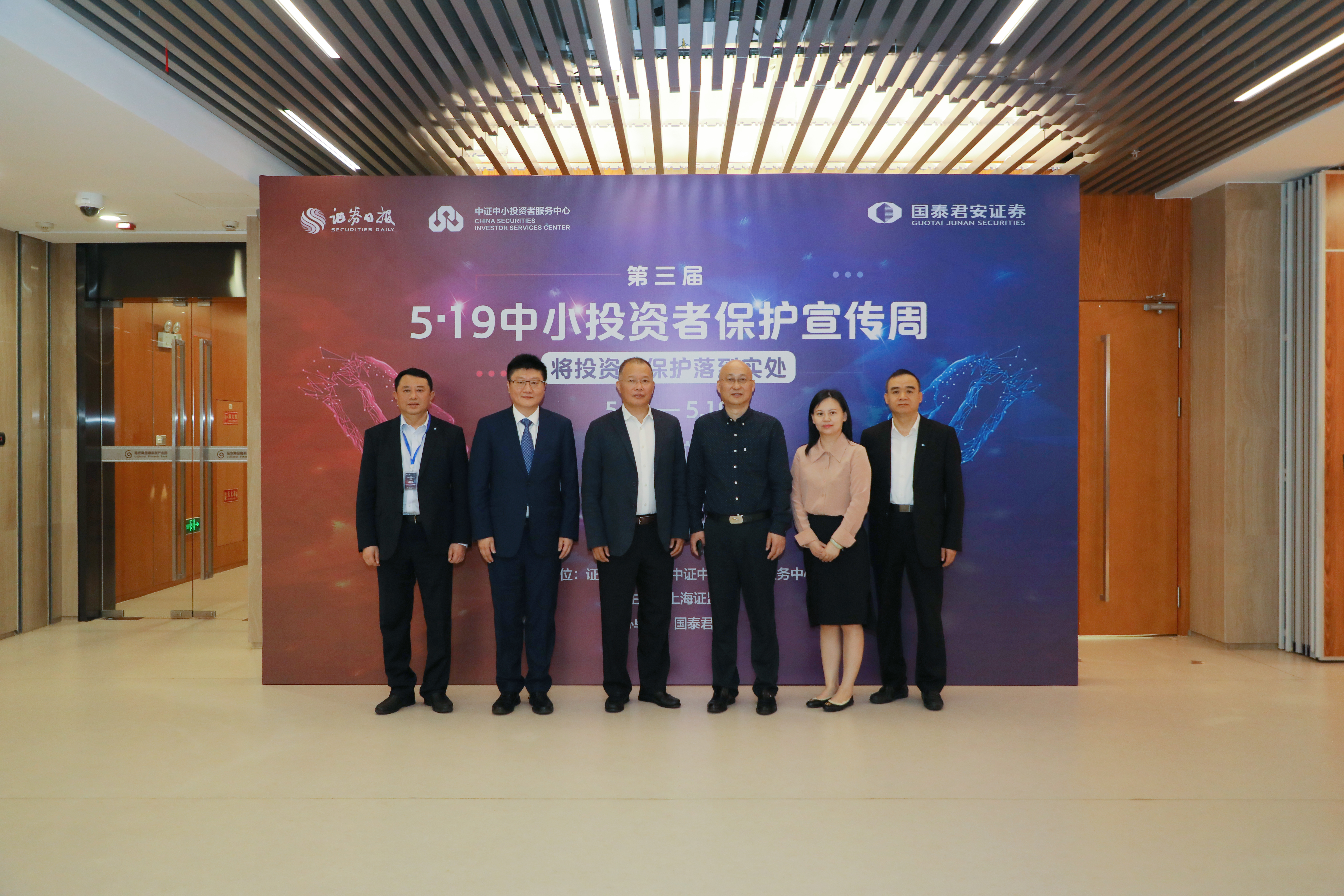5月19日,由證券日?qǐng)?bào)社和中證中小投資者服務(wù)中心主辦,北京、上海、天津、貴州和深圳證監(jiān)局聯(lián)合主辦,中信建投證券、渤海證券、華創(chuàng)證券、第一創(chuàng)業(yè)證券和國(guó)泰君安證券協(xié)辦的第三屆“5·19中小投資者保護(hù)宣傳周”活動(dòng),走進(jìn)了位于上海市的國(guó)泰君安證券。