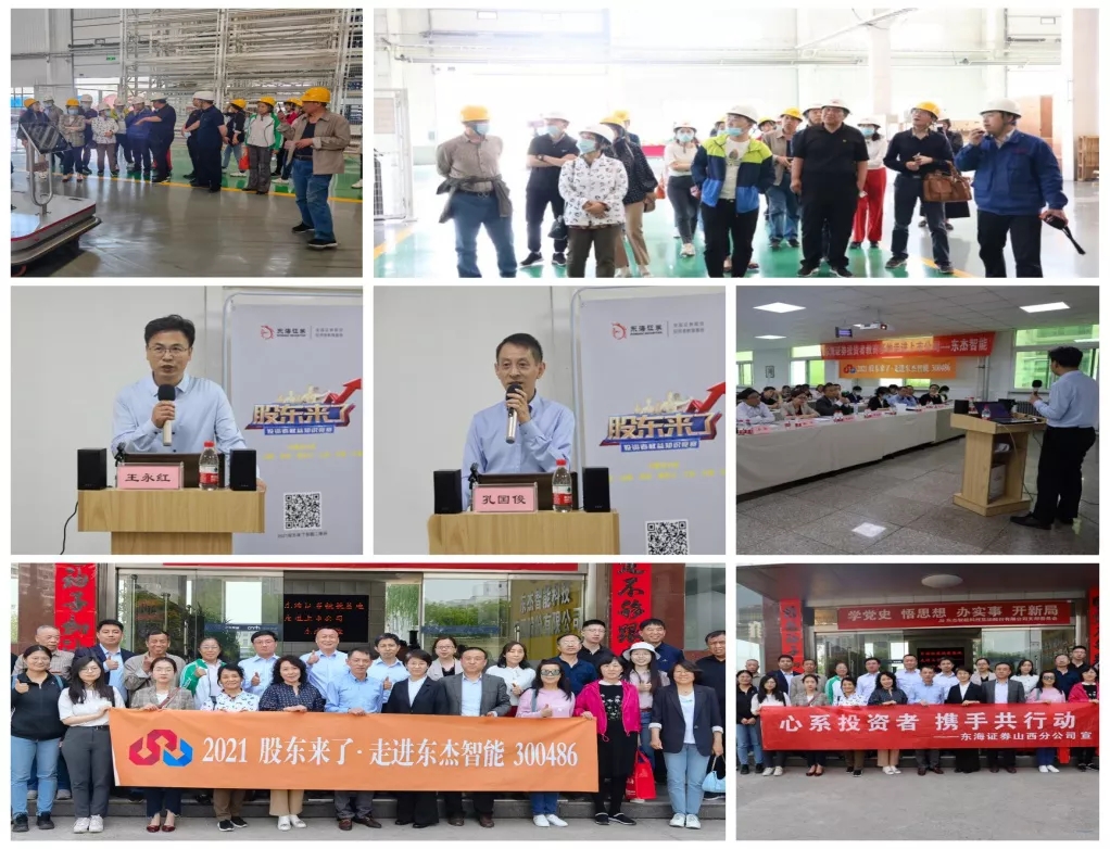 為積極貫徹落實(shí)中國(guó)證監(jiān)會(huì)關(guān)于開(kāi)展第三屆“5·15全國(guó)投資者權(quán)益保護(hù)宣傳日”活動(dòng)部署,積極配合投服中心2021股東來(lái)了投資者權(quán)益知識(shí)競(jìng)賽的宣傳工作,在山西證監(jiān)局、山西省證券業(yè)協(xié)會(huì)和山西省上市公司協(xié)會(huì)的指導(dǎo)下,東海證券山西分公司聯(lián)合東海證券投資者教育基地,以“心系投資者·攜手共行動(dòng)——守初心擔(dān)使命,為投資者辦實(shí)事”為主題,于2021年5月18日開(kāi)展了“走進(jìn)上市公司——東杰智能科技集團(tuán)股份有限公司”投教活動(dòng)。