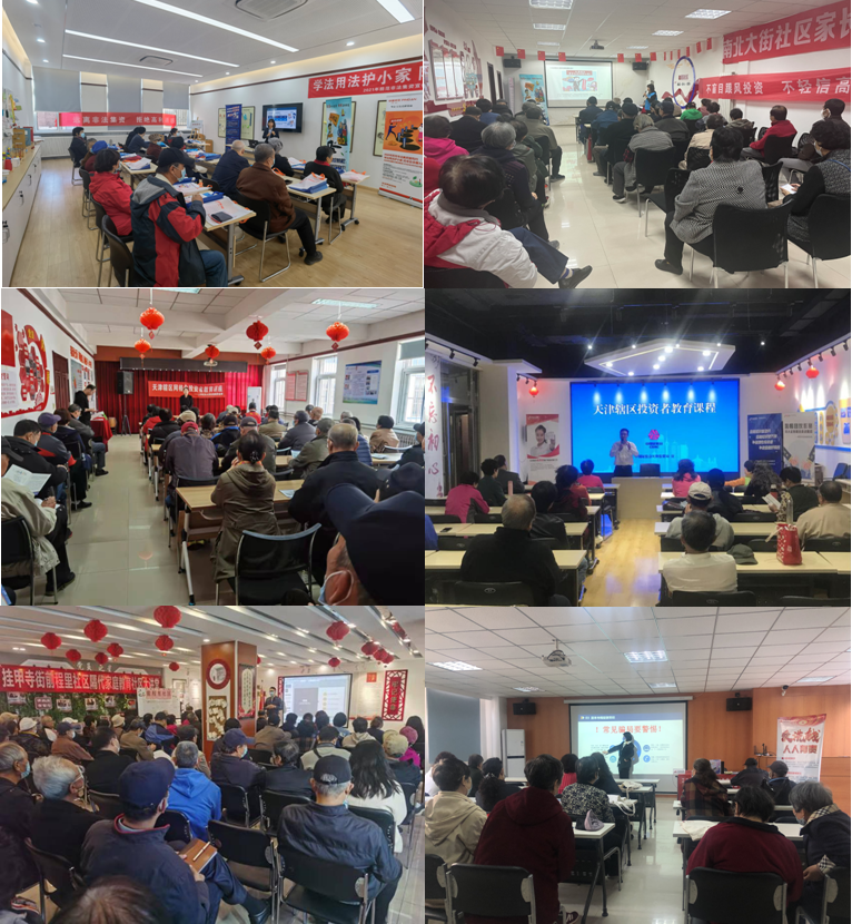 此階段宣傳活動以河西區(qū)各街道黨群服務中心及居家養(yǎng)老服務中心為工作圓心,以點帶面,從線到片,形成區(qū)域效應。通過懸掛宣傳條幅、樹立宣傳易拉寶、張貼宣傳海報等方式營造宣傳氛圍;通過專業(yè)講師授課、發(fā)放宣傳彩頁,播放防范非法集資視頻等方式開展宣傳,引導大家熟知正確投資理財相關常識,幫助廣大群眾識別投資理財常見誤區(qū),樹立正確投資理財觀念,提高風險防范意識和能力。