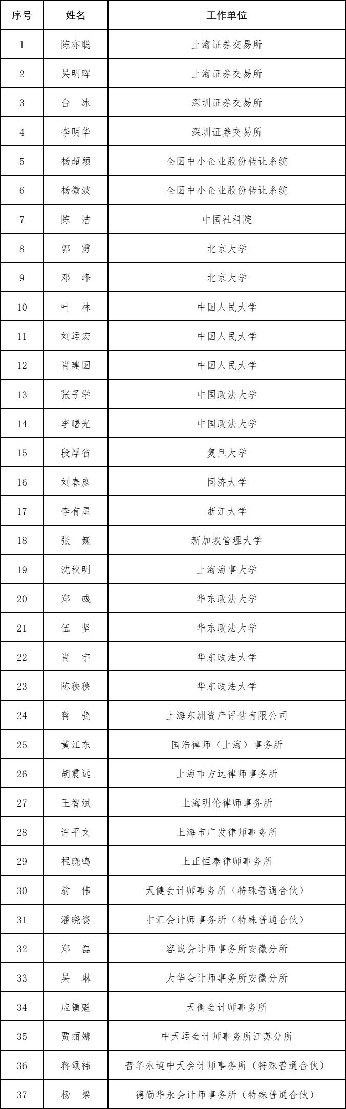投服中心證券訴訟案件評(píng)估專家委員會(huì)委員名單:
