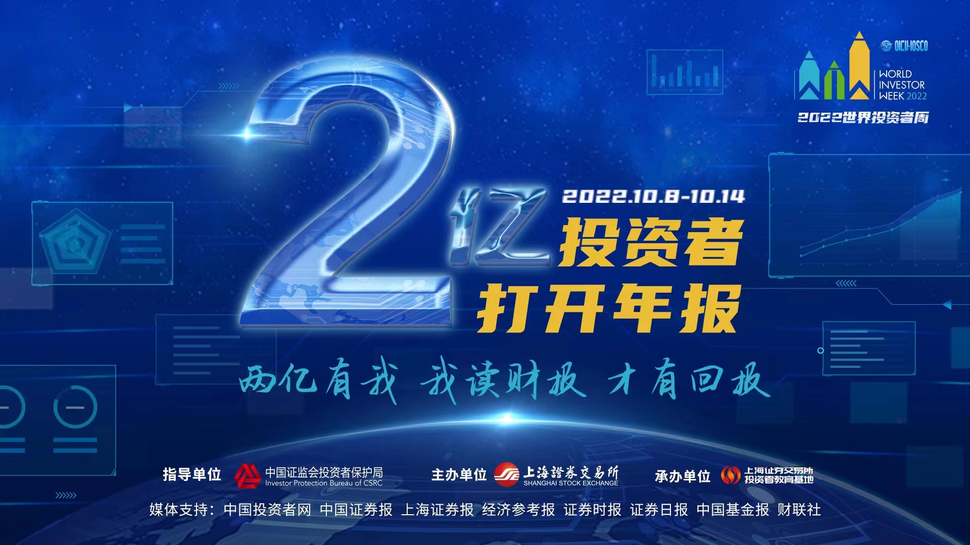 10月8日,作為參加“2022年世界投資者周”的主題活動,在中國證監(jiān)會投資者保護(hù)局指導(dǎo)下,由上海證券交易所牽頭的“2億投資者打開年報”主題公益投教活動正式啟動。