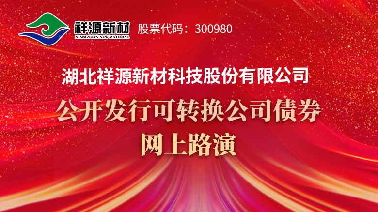 歡迎光臨證券日?qǐng)?bào)網(wǎng)。湖北祥源新材科技股份有限公司公開(kāi)發(fā)行可轉(zhuǎn)換公司債券網(wǎng)上路演將于2023年6月30日(星期五)10:00-12:00在本網(wǎng)舉行。網(wǎng)上提問(wèn)已經(jīng)開(kāi)通,歡迎投資者積極參與...詳細(xì)>>