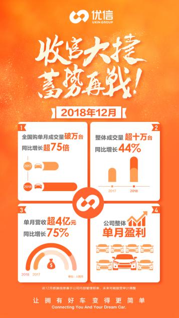據(jù)悉,優(yōu)信在2018年12月份實(shí)現(xiàn)了單月整體成交量超10萬輛,同比增長44%,其中全國購單月成交量破1萬輛,同比增長超75倍,二手車跨區(qū)域交易的爆發(fā)已成為新增長點(diǎn),將持續(xù)帶動業(yè)績增長。