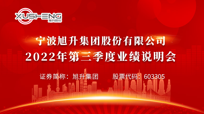歡迎光臨證券日報(bào)網(wǎng)。寧波旭升集團(tuán)股份有限公司2022年第三季度業(yè)績說明會(huì)將于2022年11月16日(星期三)下午15:00-16:00,以網(wǎng)絡(luò)遠(yuǎn)程文字交流的形式在本網(wǎng)舉行。網(wǎng)上提問已經(jīng)開通,歡迎投資者積極參與。[詳細(xì)]