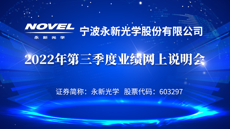 歡迎光臨證券日報(bào)網(wǎng)。寧波永新光學(xué)股份有限公司2022年第三季度業(yè)績網(wǎng)上說明會(huì)將于2022年11月23日(周三)15:00-16:00,以網(wǎng)絡(luò)遠(yuǎn)程文字交流的形式在本網(wǎng)舉行。網(wǎng)上提問已經(jīng)開通,歡迎投資者積極參與。[詳細(xì)]