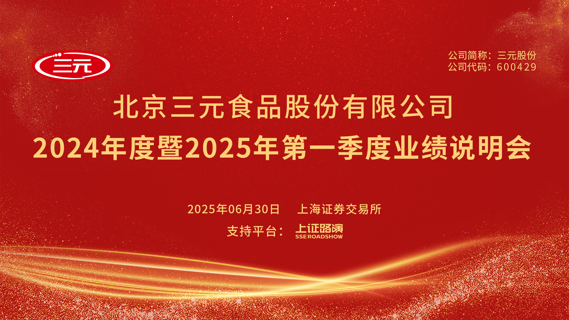 歡迎光臨證券日?qǐng)?bào)網(wǎng)。北京三元食品股份有限公司2024年度暨2025年第一季度業(yè)績(jī)說(shuō)明會(huì)將于2025年06月30日 (星期一)13:00-14:00舉行。[詳細(xì)]