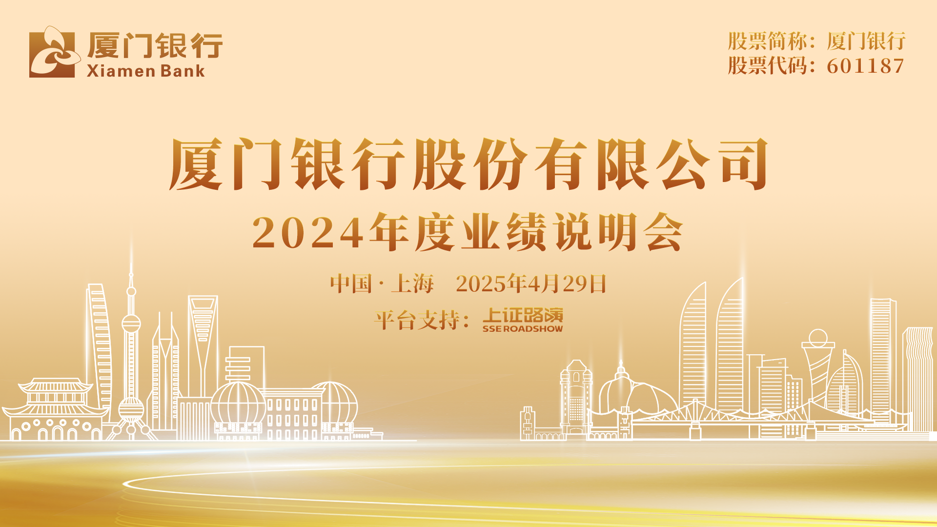 歡迎光臨證券日報網(wǎng)。廈門銀行股份有限公司 2024年度業(yè)績說明會將于2025年4月29日(星期二)15:30 ~ 17:30舉行。[詳細]